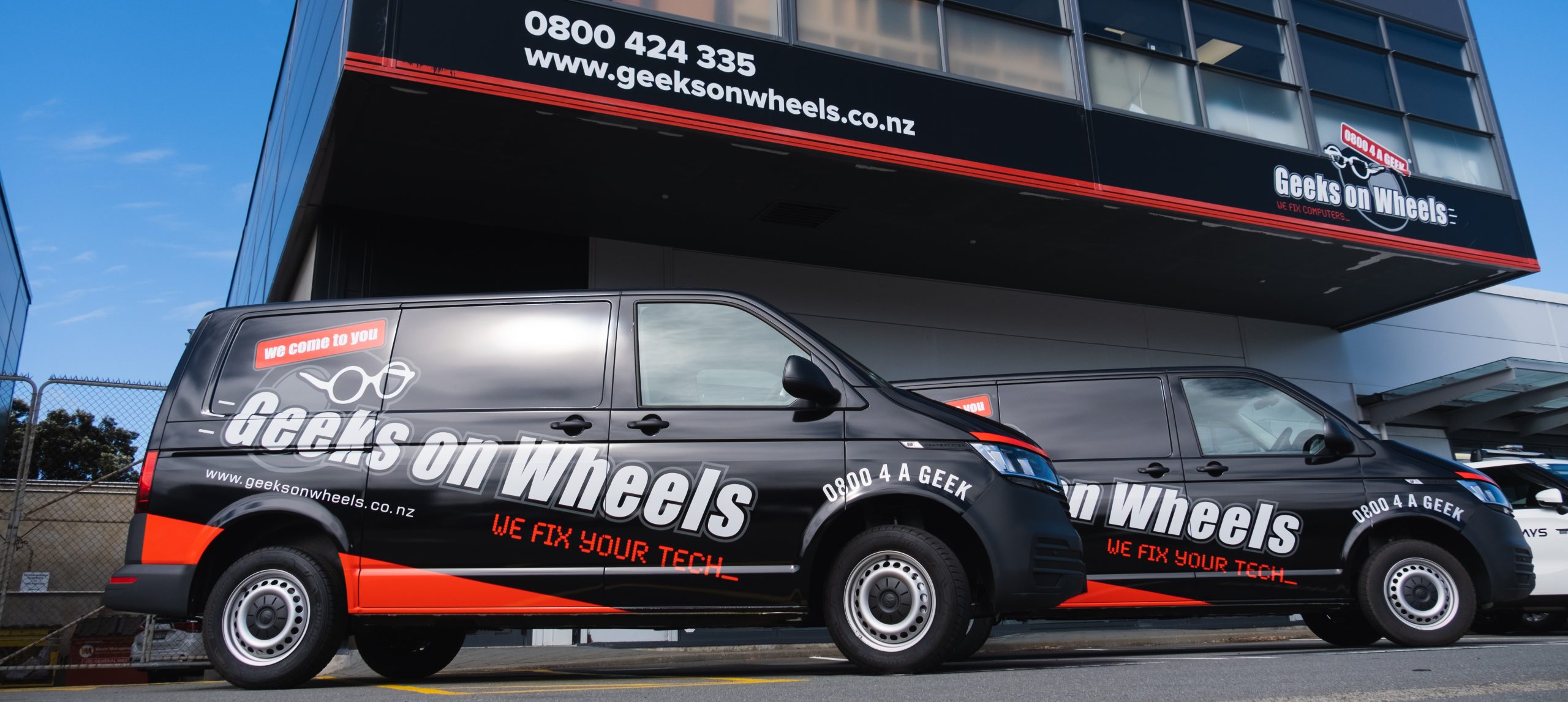Geeks on Wheels has a fleet of vehicles covering Auckland and over 10 Auckland-based tech experts on hand to assist with computer repair and help when you need it most!