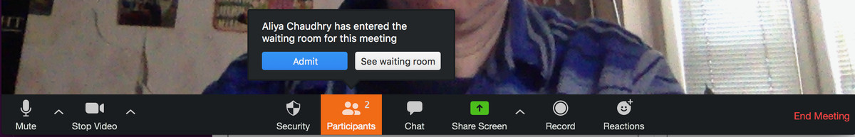 When each participant clicks on their link, they will be asked to wait, while you will get a notification telling you that someone has entered the waiting room. You can either immediately admit them or click on “See waiting room.”