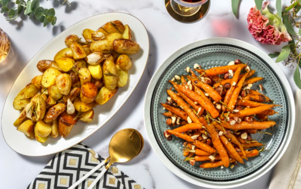 HelloFresh has a slightly different way of doing things. There are two menu options, “The Christmas Box” and “The Premium Christmas”. Both of which come with appetisers, two protein options, three sides and dessert. Prices range from $229.99 for 4-6 people ($57.50PP) to $399.99 for the 12-14 people meal kit ($33PP).