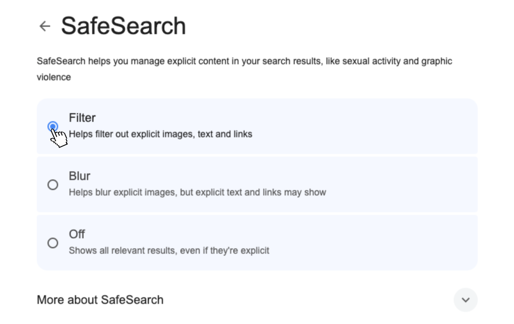 SafeSearch options and parental controls are a quick and easy way to ensure your kids aren’t accessing explicit materials. Google makes it simple to set up SafeSearch on any web device or browser. Additionally, you can easily configure parental controls on your kids’ devices and even some routers!