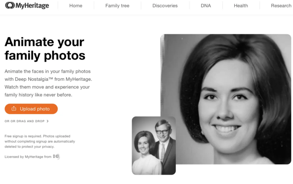 This isn’t the most high-tech AI tool on the list and it’s capabilities aren’t as numerous as many others we’ve mentioned. However, we think it’s a great simple application, that’s easy to use and provides a great service. Deep Nostalgia by My Heritage, is a free-to-use AI-powered tool that generates moving images from uploaded stills. Helping people across the world bring their loved ones to life one last time. Bringing movement and emotion to still photos of loved ones who are no longer present. A simple use of AI, but a very moving one (excuse the pun).